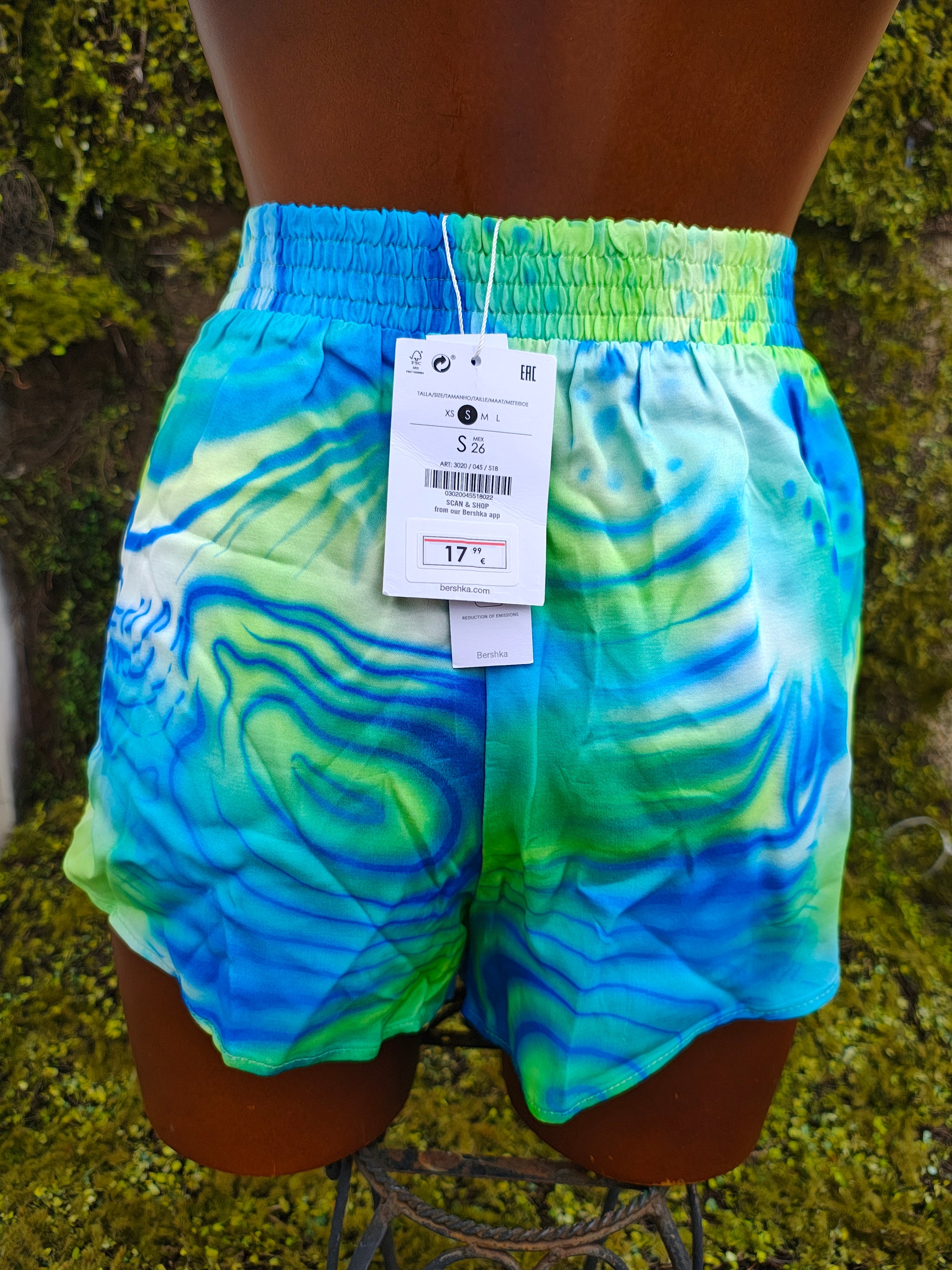 NUEVO – Shorts tie-dye azul y verde Bershka (Talla EUR S / USA S / MEX 26)