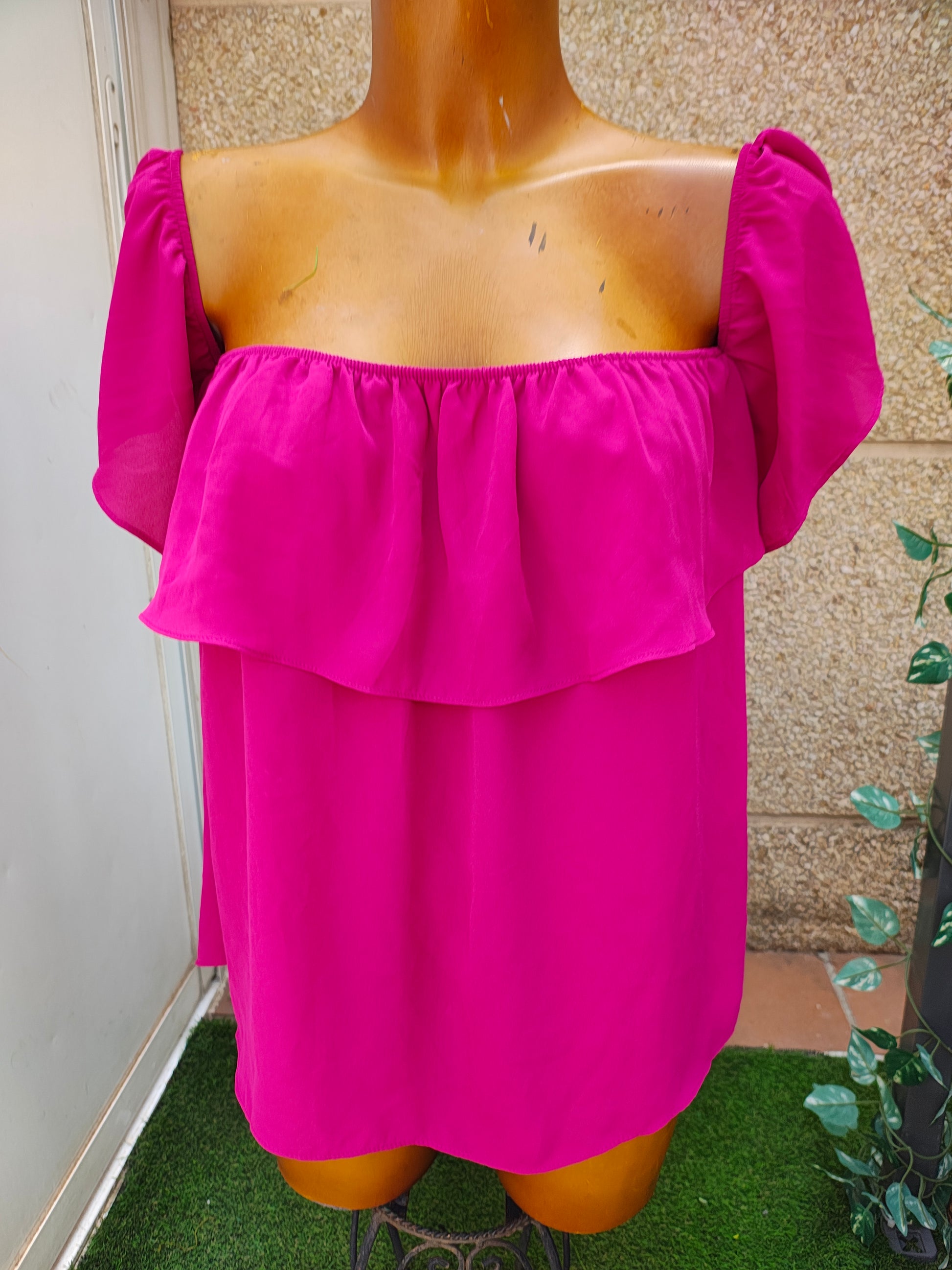 USADO – Top fucsia con volantes en hombros STRADIVARIUS (Talla L)