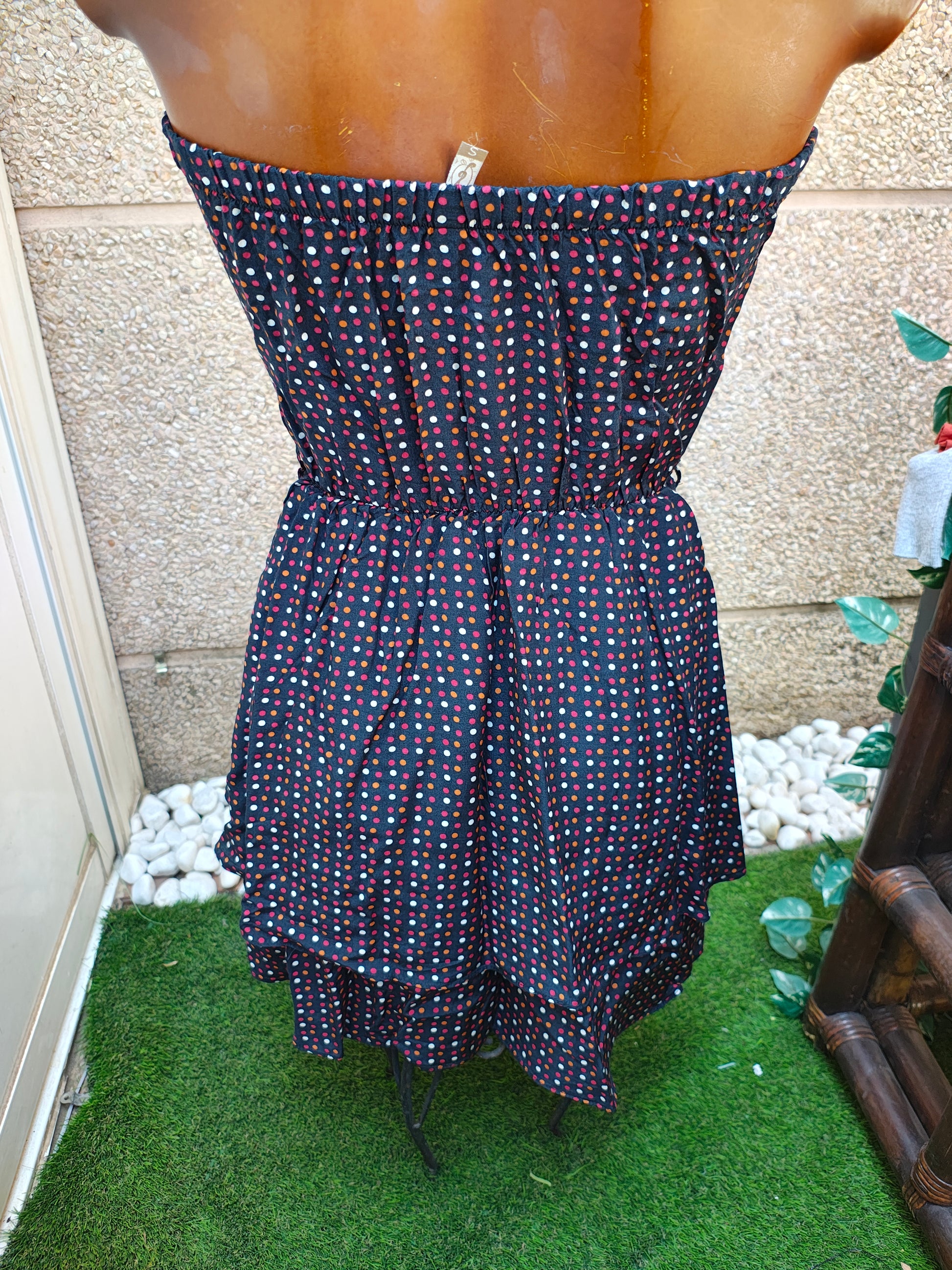 USADO – Vestido palabra de honor estampado de lunares multicolor (Talla S)